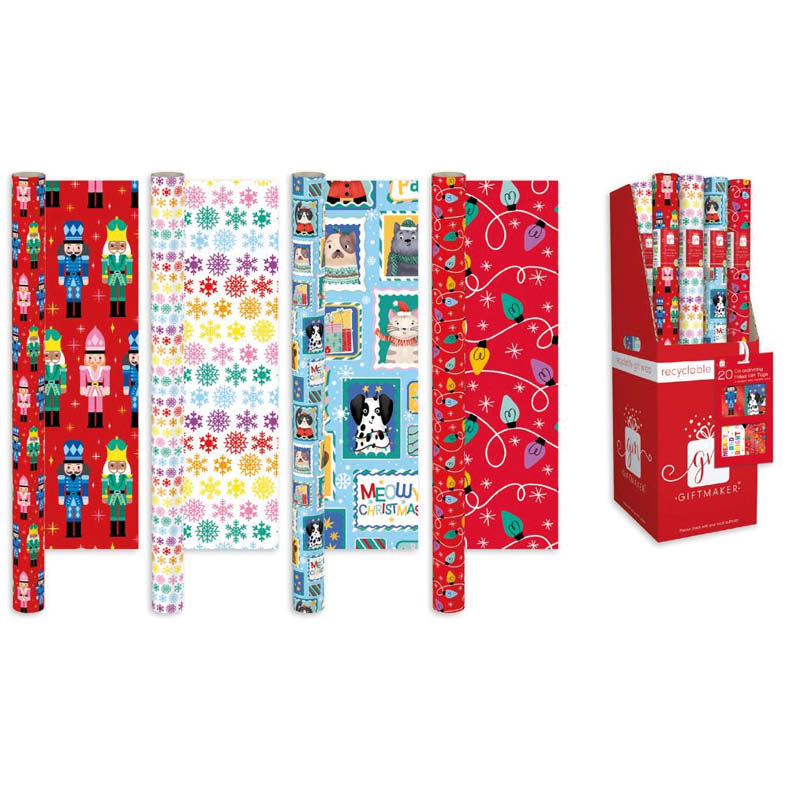 50 x Cute Christmas Gift Wrap Rolls 4m