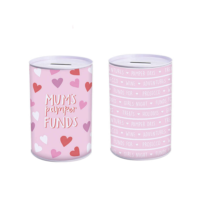 Mothers Day themed money tins, supplied in two assorted designs. Each stands approx 15cm tall and can hold up to £100 in coins. Tin opener required to open.