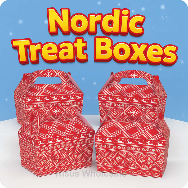 100 party treat boxes packed in 10 packs of 10. Each measures 12 x 12.5 x 6cm. Perfect for filling with sweets and toys. Supplied flat packed.