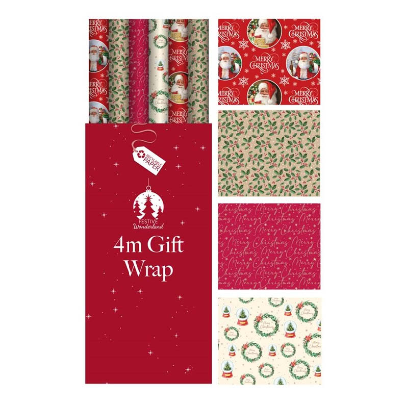 36 x Traditional Christmas Gift Wrap Rolls 4m
